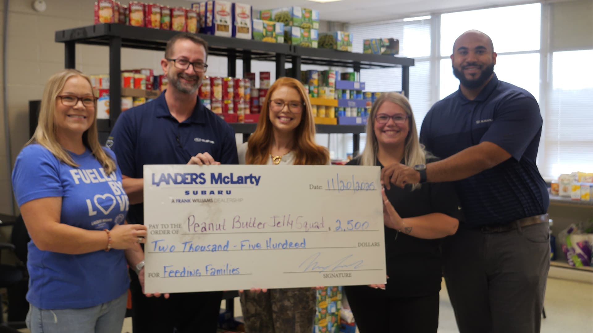 At Landers McLarty Subaru, supporting our community goes far beyond the showroom. Our team was proud to present a $2,500 donation to The Peanut Butter & Jelly Squad, a local food distribution service dedicated to helping families with children who are facing food insecurity. This organization serves families across four counties, ensuring that kids have access to the meals they need to thrive.