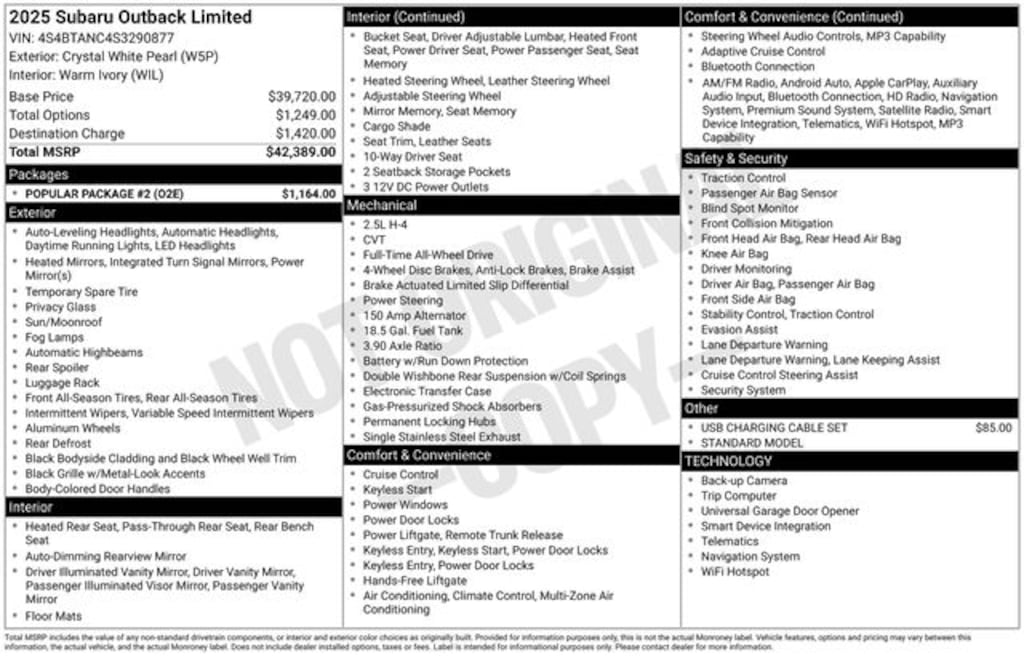 - Emergency communication system: MySubaru Safety (3-year free trial)